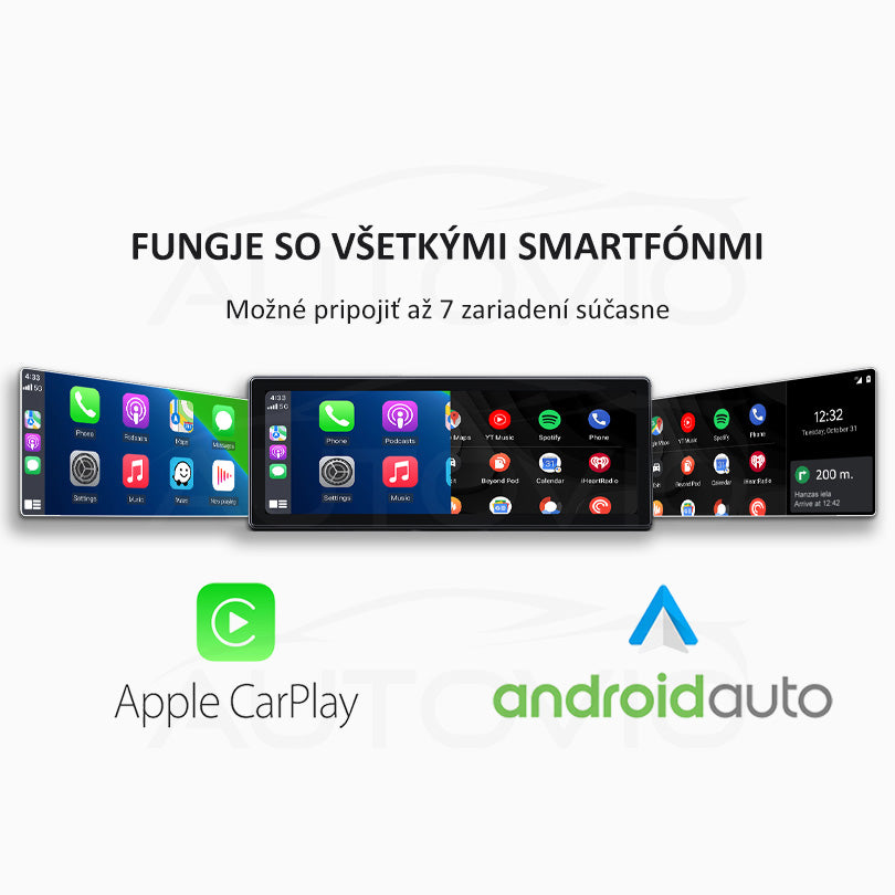 Áno, multimediálne zariadenie podporuje Apple CarPlay aj Android Auto, čím vášmu autu prináša moderné technológie pre plynulú navigáciu, prehrávanie hudby a komunikáciu.